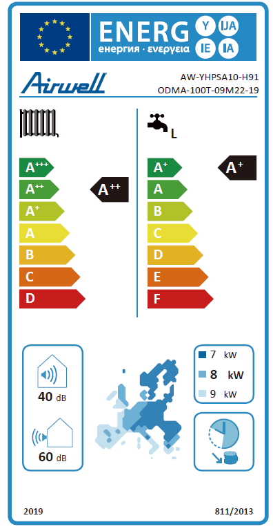 AIRWELL Wellea 10.00-10.00 kW šilumos siurblys oras-vanduo su 190l integruotu boileriu, ODMA-100T-09M22-19+AW-YHPSA10-H91
