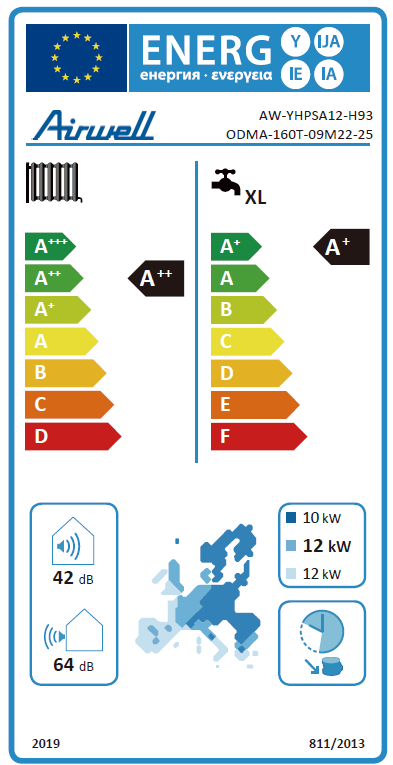 AIRWELL Wellea 12.10-12.00 kW šilumos siurblys oras-vanduo su 240l integruotu boileriu, ODMA-160T-09M22-25+AW-YHPSA12-H93