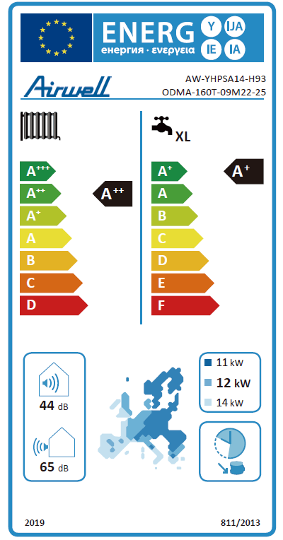 AIRWELL Wellea 14.50-13.50 kW šilumos siurblys oras-vanduo su 240l integruotu boileriu, ODMA-160T-09M22-25+AW-YHPSA14-H93