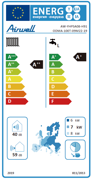 | Energijos klasė šildyme | A+++ |