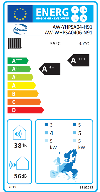 | Energijos klasė šildyme | A+++ |