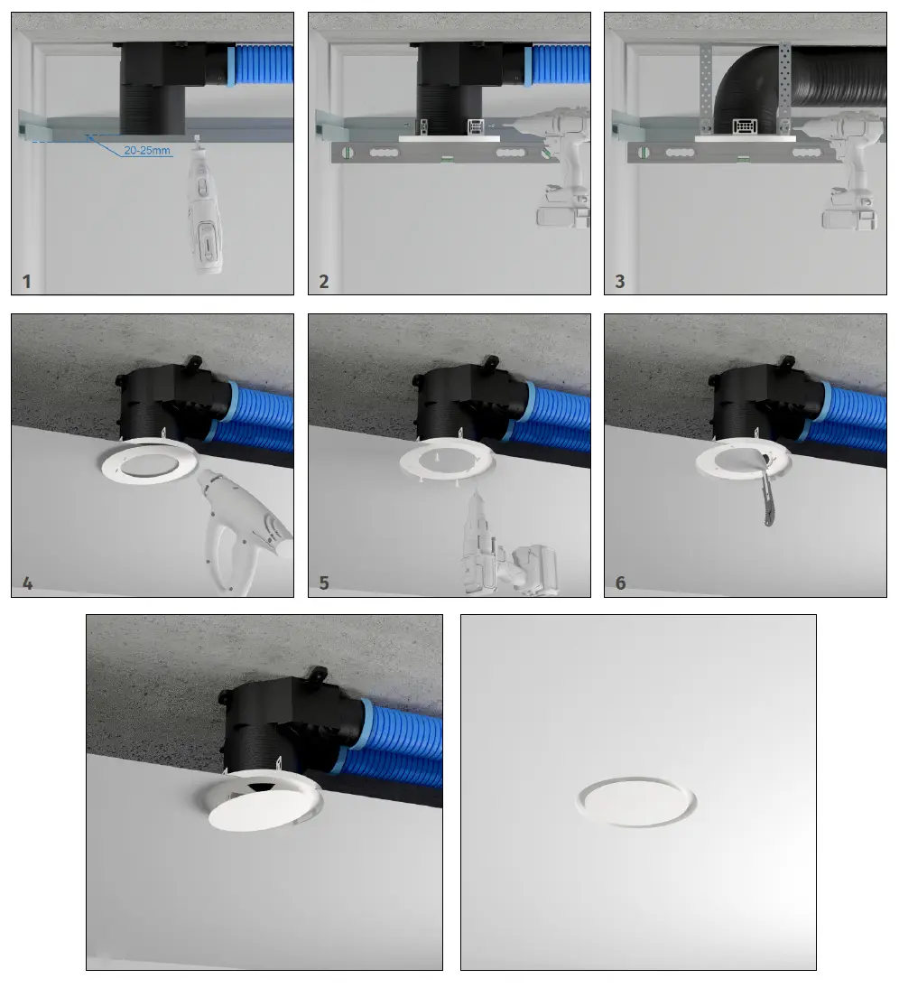 Montuojamas tiesiai į įtempiamas lubas, todėl nepažeidžia jų estetikos. Dėl magnetinio dangtelio difuzorių galima lengvai nuimti, prižiūrėti ar valyti.