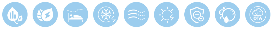 • Išmanus atitirpinimas: kondicionieriui pradėjus atsišildymo ciklą, ventiliatoriaus greičiai valdomi tokiu principu, kad kondicionierius neišpūstų vėsaus oro. Tokiu būdu išvengiamas šalto oro gūsio sukeliamas diskomfortas.