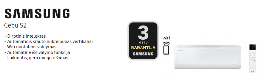 Samsung oro kondicionieriai – tai efektyvus sprendimas patalpų vėsinimui ir šildymui. Modernūs oro kondicionieriai užtikrina komfortišką temperatūrą, mažina drėgmės lygį ir valo jūsų namų orą.