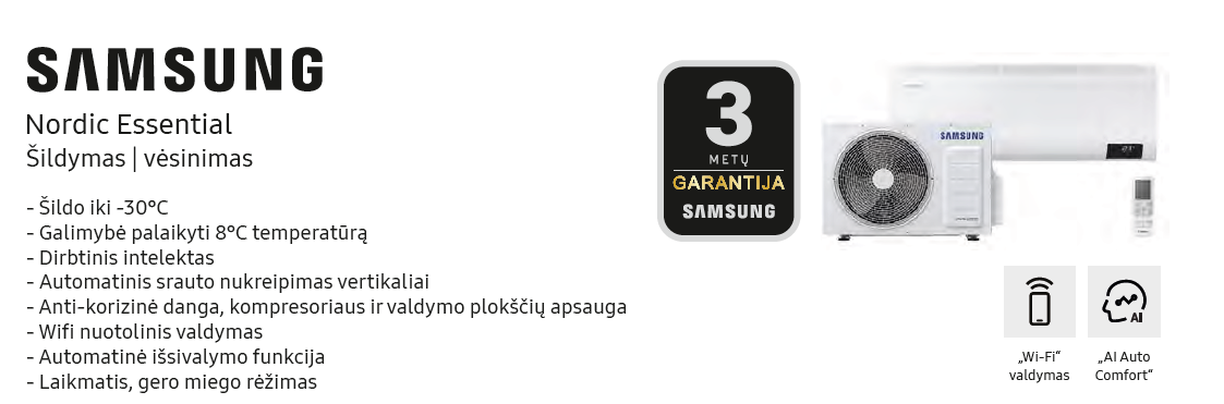 Nordic serija. „Samsung“ N-serijos kondicionieriai pritaikyti šaltesniam klimatui, todėl lengvai veikia prie žemų temperatūrų. Šis modelis gali šildyti patalpas esant –30°C.