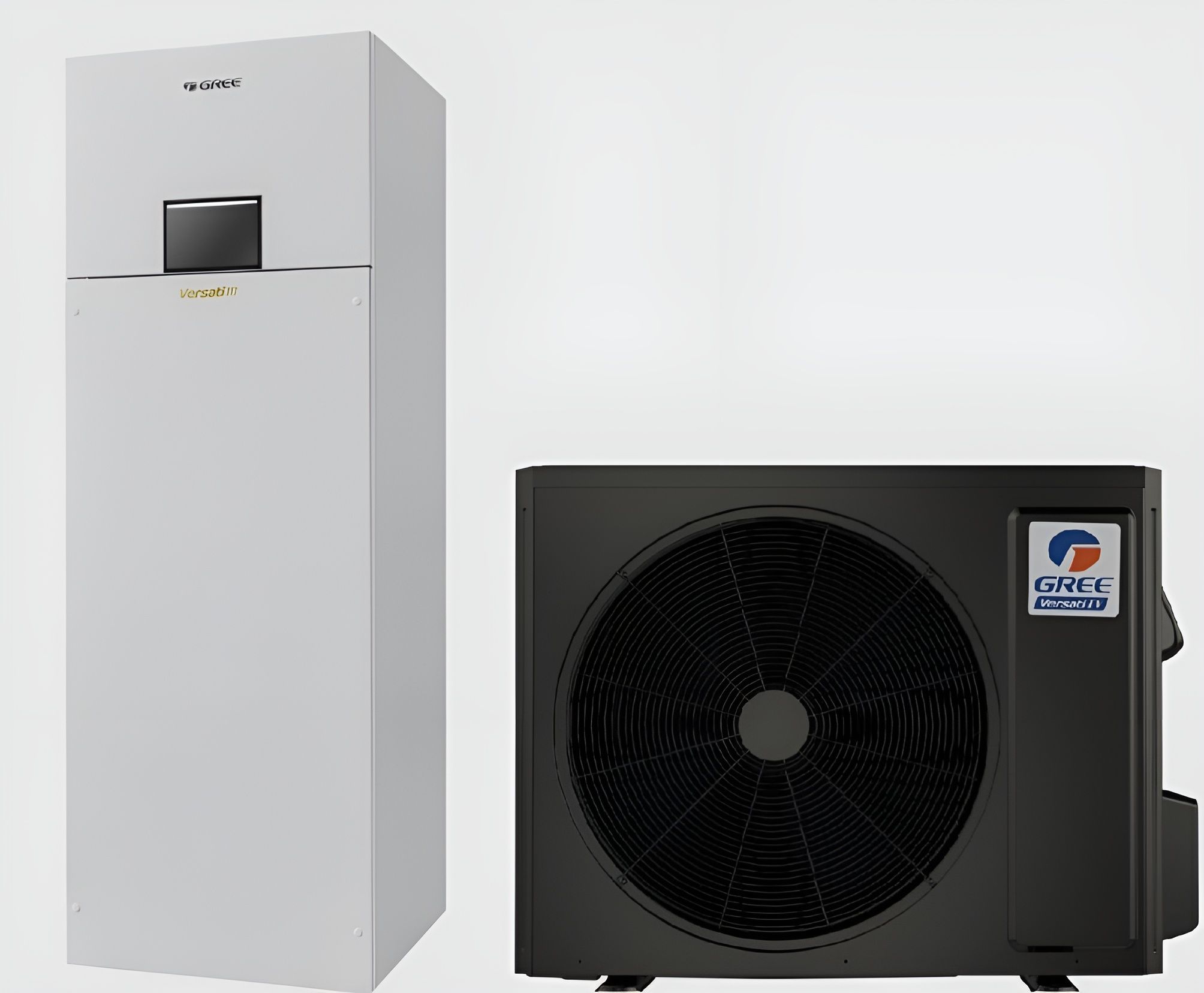 Gree Versati IV DUO 4,3/4,5 kW šilumos siurblys oras–vanduo su 185 litrų integruota talpa ir juodu išoriniu bloku – naujos kartos šilumos siurblys, jūsų namų šildymui ir karšto vandens ruošimui!